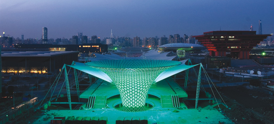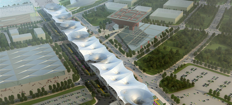 The project is 1045m long in North and south, 99.5m-110.5m wide in East and west, 80m wide above ground, 130669m2 in base area, 227169 m2 in total construction area, including 42877 m2 in ground area and 184292 m2 in underground area. The roof of this project includes membrane roof and six steel reticulated shells "Sunshine Valley". Reticulated shell height: 41m, steel consumption: about 300 tons, the number of nodes of reticulated shell is about 1600, the area of special-shaped curtain wall is about 35,000 square meters.