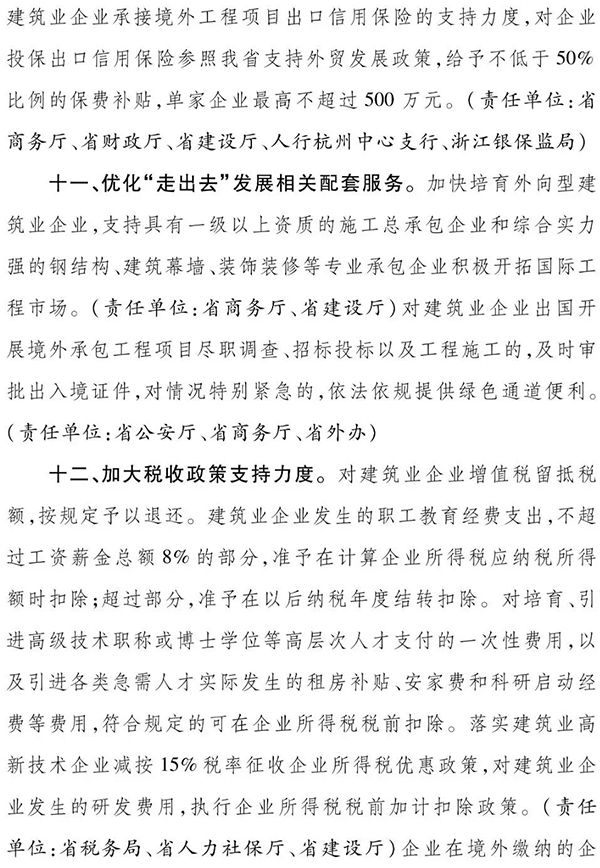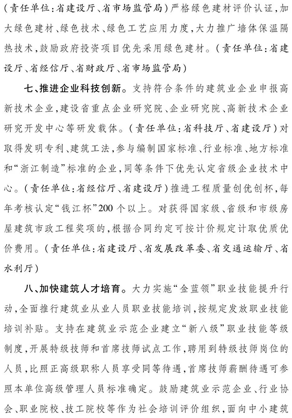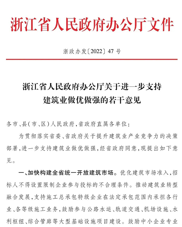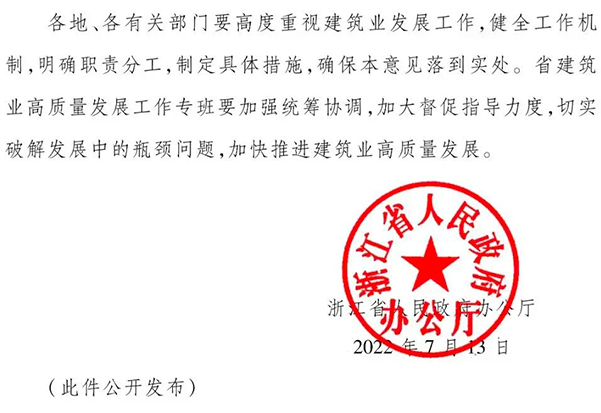 The General Office of Zhejiang Provincial People's Government issued Several Opinions on Further Supporting the Construction Industry to Become Better and Stronger