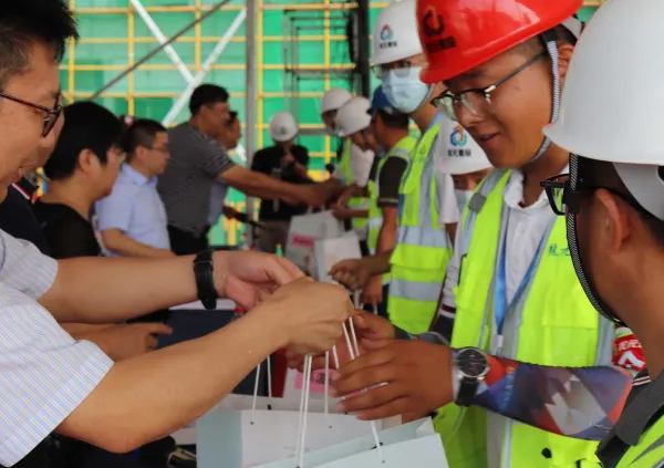 與會領導還為辛勤工作在一線的項目工人送上防暑慰問品,叮囑工人要增強自我防護意識,確保身心健康,要求項目部做好后勤保障工作,齊心協力,克服困難,持續推進項目建設。