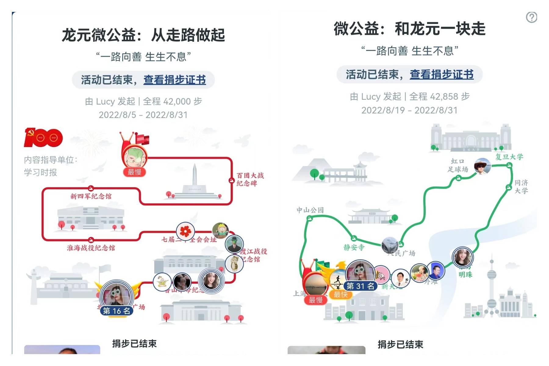 活動發(fā)起后,龍?jiān)嗄隉崆楦邼q,除總部外,遠(yuǎn)在全國各地的龍?jiān)策h(yuǎn)程助力,不到一周就完成了30公里的行走任務(wù)。