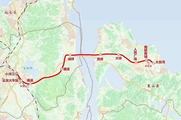 寧波至象山市域(郊)鐵路(簡(jiǎn)稱“寧象線”),作為寧波市軌道交通12號(hào)線,為寧波市軌道交通網(wǎng)中的南翼骨架線,連接寧波主城與象山,支撐城市空間向南拓展,覆蓋鄞州區(qū)云龍、橫溪、塘溪、咸祥及象山縣賢庠、大徐、大目灣。寧象線線路全長(zhǎng)約61.7公里,全線設(shè)站10座,平均站間距6.83公里,其中地下站2座、高架站8座,全線設(shè)橫溪車輛段1座及象山南部新城停車場(chǎng)1座。采用目標(biāo)速度為160公里/小時(shí)的市域A型車。