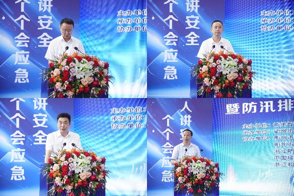這是衢州市2023年安全生產(chǎn)月防汛排澇和消防救援應(yīng)急演練現(xiàn)場。本次活動(dòng)由衢州市智慧新城管理委員會(huì)、衢州市住房城鄉(xiāng)建設(shè)局主辦,龍?jiān)瘓F(tuán)承辦。衢州市住房和城鄉(xiāng)建設(shè)局黨委委員、副局長吳群,衢州市慧城產(chǎn)業(yè)發(fā)展集團(tuán)有限公司黨委書記、董事長、總經(jīng)理陳衍華,衢州智慧新城管理委員會(huì)安全應(yīng)急部部長黃斌出席活動(dòng)并發(fā)言。項(xiàng)目各建設(shè)單位、施工單位、監(jiān)理單位共200多位代表參加活動(dòng)。龍?jiān)瘓F(tuán)浙江公司副總經(jīng)理夏柏生代表集團(tuán)作表態(tài)發(fā)言。