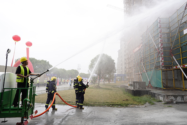 “請各演練隊(duì)伍迅速就位,演練馬上開始!”6月6日,由龍?jiān)瘓F(tuán)承建的衢州智慧新城百家坊社區(qū)項(xiàng)目(一期)工地上不時(shí)響起口哨聲,一場緊張激烈的“比武”正在進(jìn)行。