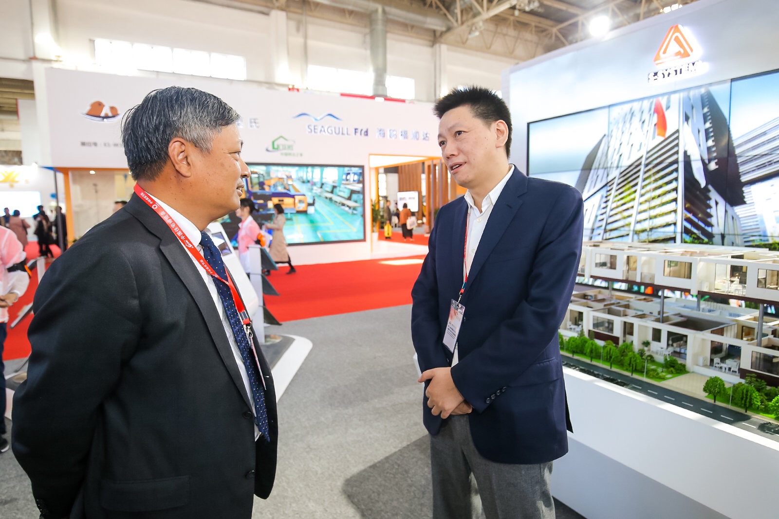 集團總裁賴朝暉(右)與住建部住宅產業中心副主任梁俊強先生交流